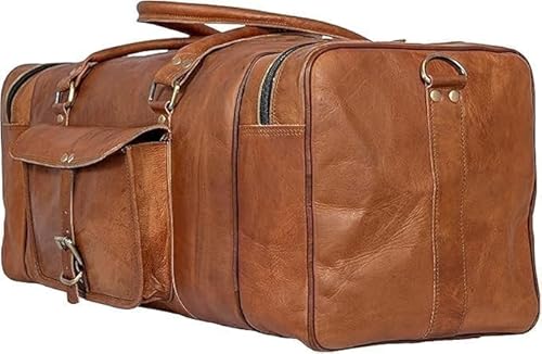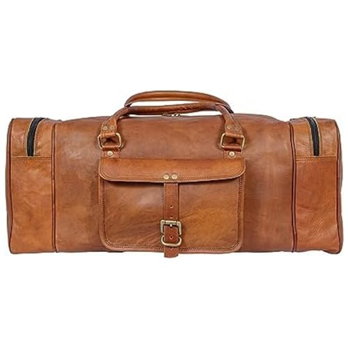 ALASKA EXPORTS duffelväska äkta vintage läder reseduffels weekendväska | handbagage | sportväska | sportväska | gymväska, Brun – stil 2, 24" Inches, Vintage