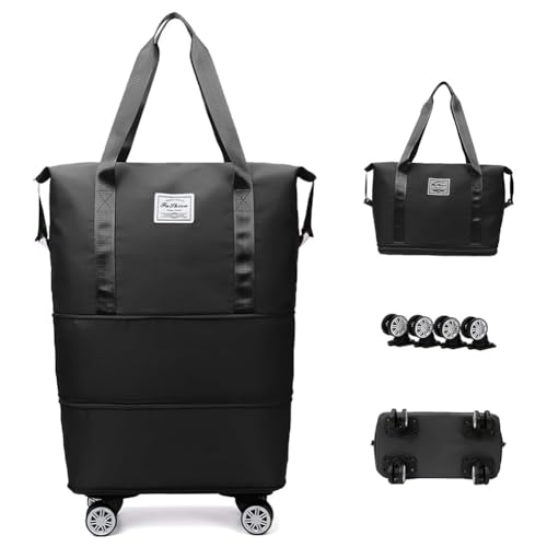 UNWAAT Vikbar bagageväska dubbla lager expanderbara resväskor stor kapacitet torr våt separering duffelväska med hjul, Svart, 2 inches (L x W x H), expandable, Mode