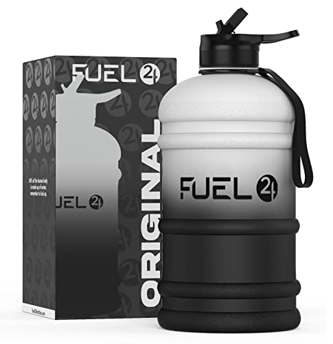 Fuel24 kanna – 2,2 liter vattenflaska – extra starkt flexmaterial – droppsäkert, pop- eller sugrörslock alternativ – 2,2 L stor sportflaska för gym, BPA-fri