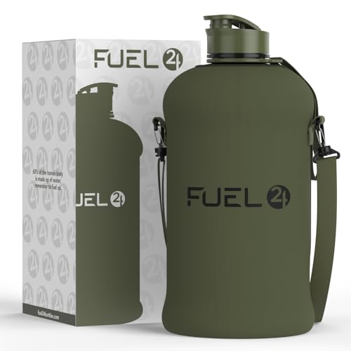 Fuel24 kanna med isolerad ärm och avtagbar axelrem | 2,2 liter vattenflaska | extra starkt material | droppsäker, pop- eller sugrörskeps | 2,2 L stor sportflaska för gym | BPA-fri (popkeps, cargo)