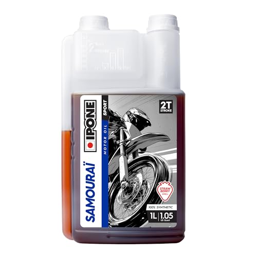 "IPONE - Samouraï Racing 2-takts motorcykelolja - 100% Syntetisk Olja med Estrar - Hög Prestanda - 1 liters doseringsdunk doft av jordgubbar