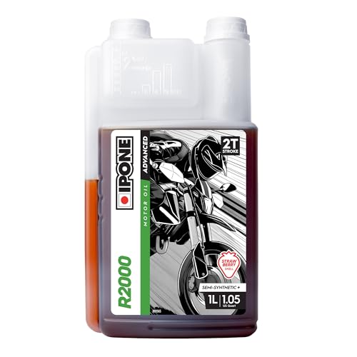 "IPONE - 2-takts motorcykelolja R2000 RS - Halvsyntetisk olja med estrar - Hög kvalitet - 1L Doseringsdunk doft av jordgubbar