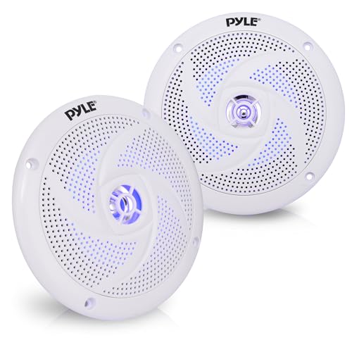 Pyle Marine Speakers 6.5 Inch - 2 Way Waterproof and Weather Resistant Outdoor Audio Stereo Sound System with LED Lights, 240 Watt Power and Low Profile Slim Style - 1 Pair (White)