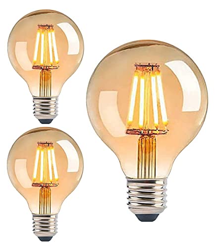 Trango 3-pack E27005, LED, E27, 3-steg, dimbar, varmvit, guldfärgad, 2 500 Kelvin, 4 watt, 400 lumen, G80 8 cm, glödlampor, Edison-glödlampa, bärnsten, vintage, glödlampa, retrobelysning, glob