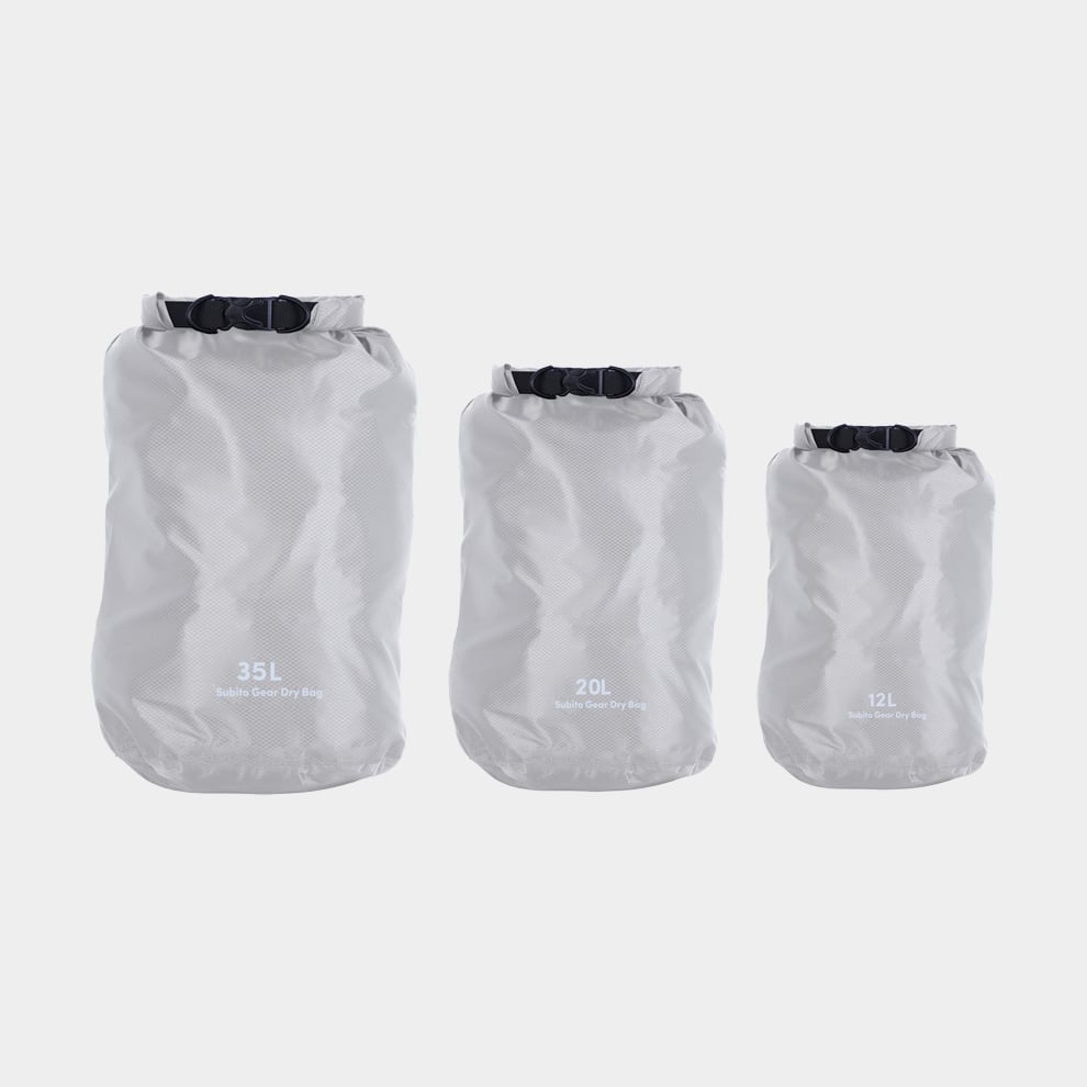 Drybag set / vattentäta packpåsar Subito Gear, 70D, 12/20/35 liter, grå, 3-pack