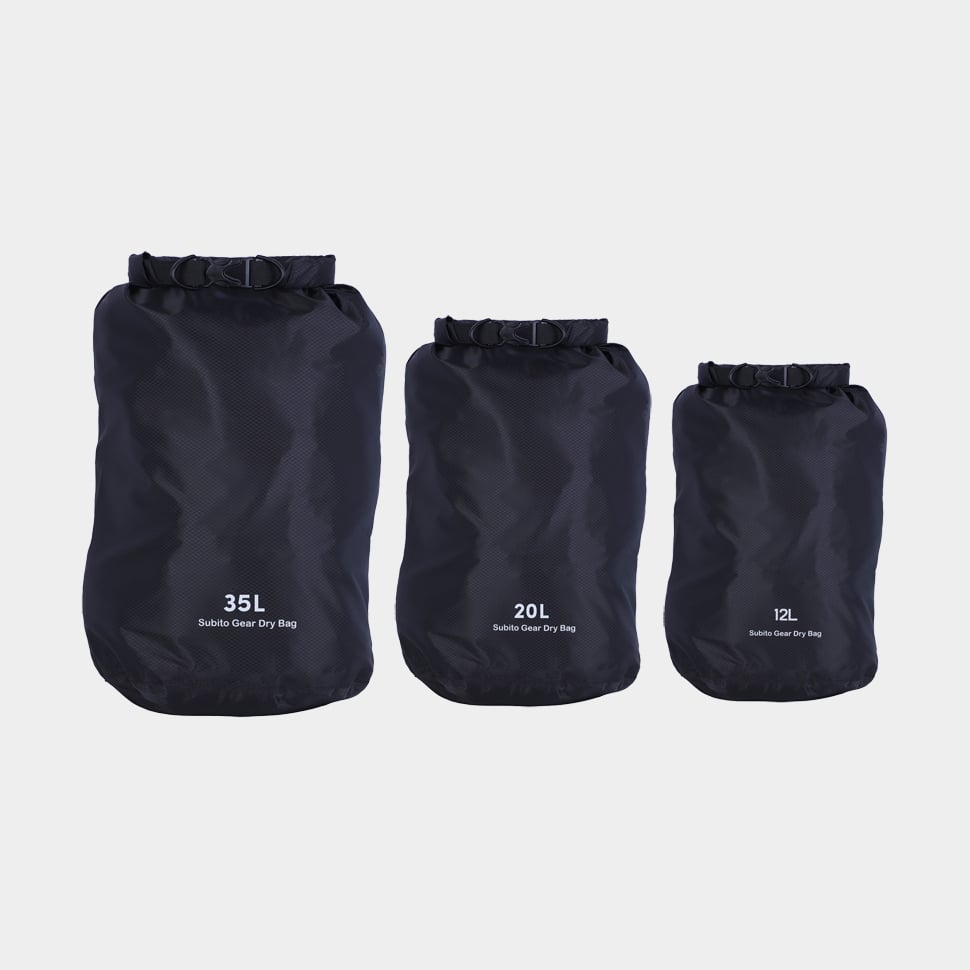 Drybag set / vattentäta packpåsar Subito Gear, 70D, 12/20/35 liter, svart, 3-pack