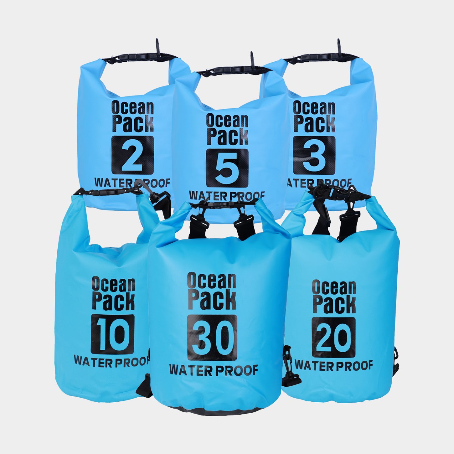 Drybag set / sjösäckar Ocean Pack, 500D, 2/3/5/10/20/30 liter, blå, 6-pack