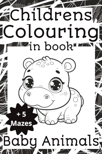 Childrens colouring In Book: Baby animal themed colouring in pictures for toddlers and young children |6x9 inches| 20 pictures plus 5 maze puzzles