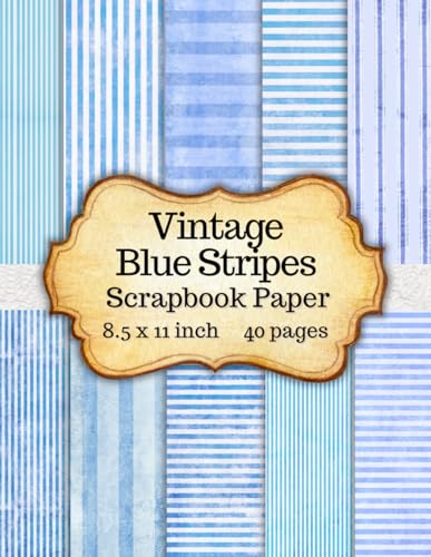 Vintage Blue Stripes Scrapbook Paper 8.5 x 11 Inches: 20 Double-Sided Sheets (40 Pages), Soft Pale Retro Stripe Backgrounds for Scrapbooking, Card Making, Journaling, DIY