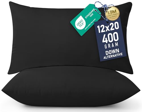 Utopia Bedding Throw Pillows Insert (Pack of 2, Black) - 12 x 20 Inches Bed and Couch Pillows - Indoor Decorative Pillow