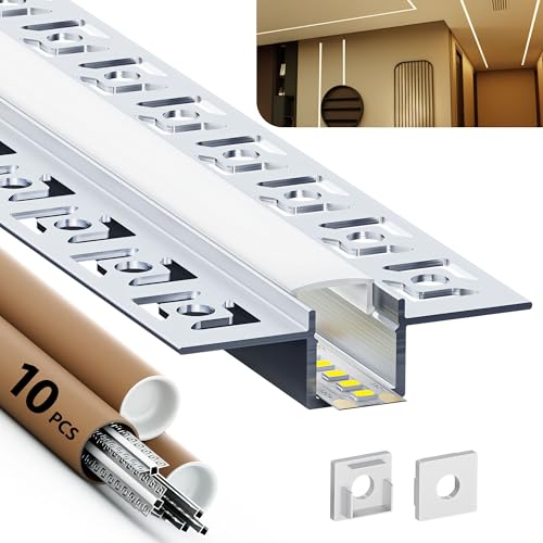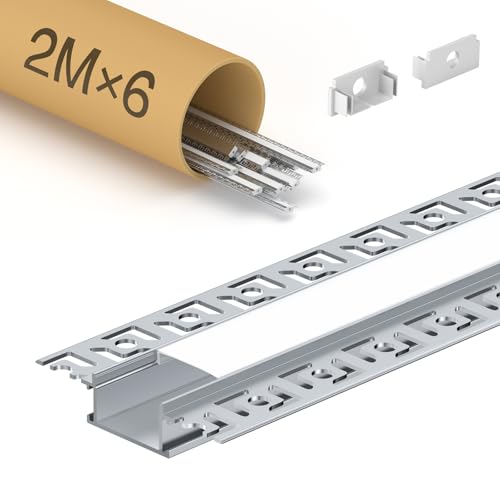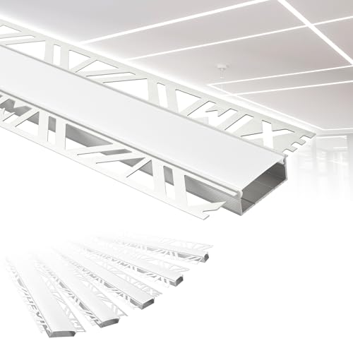 WILLLUX 6 stycken (12 m) LED-profil för gipsskivor, 2 meter, gipsskivsprofil, storlek 28 x 13,8 mm, lamellkant 64,2 mm, kompatibel med LED-remsor med en bredd mindre än 20 mm