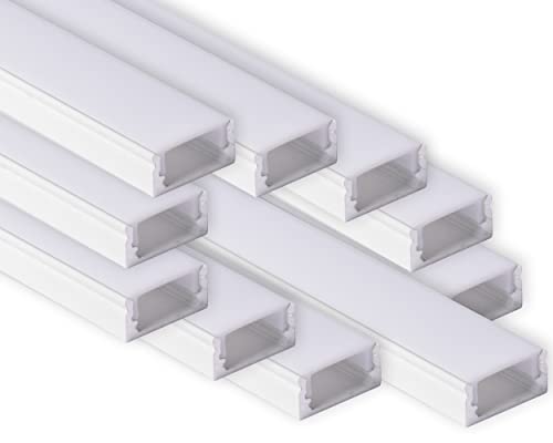 HOOLED 10 x aluminium profil för LED-remsor på 2 meter, rektangulära i aluminium (20 m) matt skydd – max fotavtryck 12,6 mm – mått 15,4 x 14,9 mm (55,5 mm vingar)