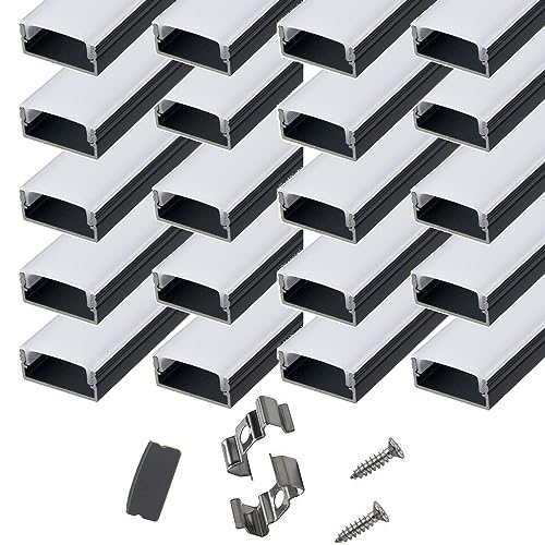 StarlandLed LED-kanal i aluminium, svart, 20-pack, 1 meter för 16 mm bred remsa, aluminiumprofil med kompletta monteringstillbehör för upp till 16 mm LED-remsa, perfekt passform för 16 mm ljusremsa