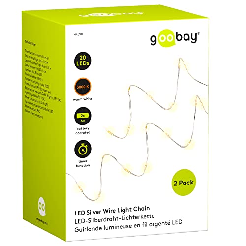 Goobay 44590 2 x 20 LED-ljuskedja – timerfunktion, batteridrift, 1,05 meter total längd, vit