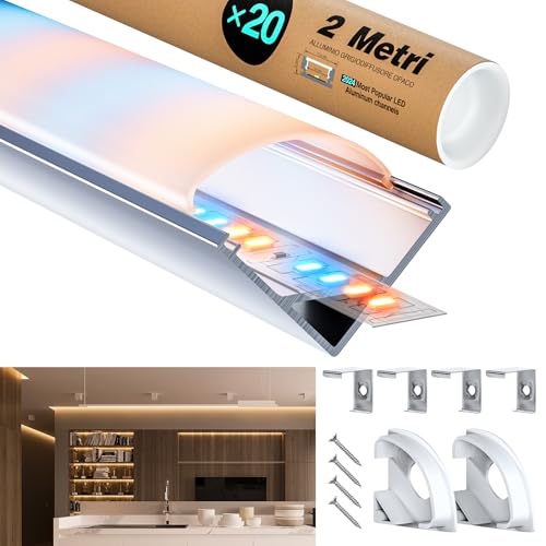 HOOLED Aluminiumprofil för hörn-LED-remsor, 20 stycken x 2 meter (40 m), vinkel LED-profiler storlek 15,8 mm x 15,8 mm, matt avskärmning med maximal remsa 10,4 mm