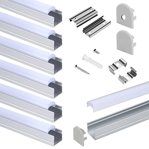 Efishine 6-pack 3,3 fot/1 meter 17 x 20 mm LED-aluminiumprofil, U-form spotless silver aluminiumkanalsystem med 60° krökt tjockt mjölkvitt lock för LED-remsor ljusinstallation