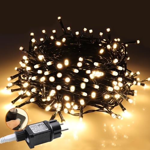 20 m LED-ljusslinga för utomhusbruk, 200 meter, väderbeständig med uttag, julbelysning utomhus, varmvit, med 8 lägen och timerfunktion, julbelysning för jul, bröllop
