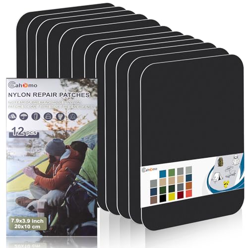 Självhäftande nylonlapp, Cahomo 12 stycken 20 x 10 cm nylonreparationslappar, självhäftande vattentät reparationslapp, för jackor, tält, paraply-svart