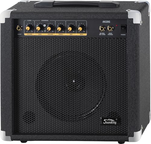 Soundking AK20-G gitarrförstärkare 60 watt – 3-bands equalizer – 8 tum högtalare med 2 kanaler – hörlursutgång och högtalaranslutning – perfekt förstärkare för nybörjare med extra robusta skyddshörn