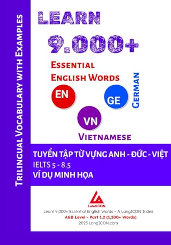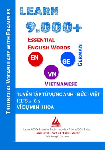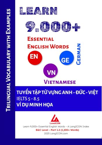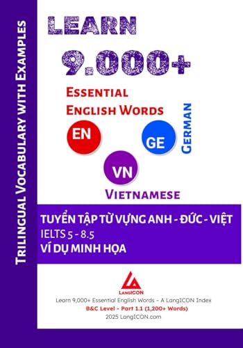 Learn 9,000+ Essential English Words - B&C Level - Part 1.1 (1,200 Words): Tuyển Tập Từ Vựng - Từ Điển Anh Đức Việt - English German Vietnamese - IELTS 5.0 - 8.5, tương ứng cấp độ A, B, C.