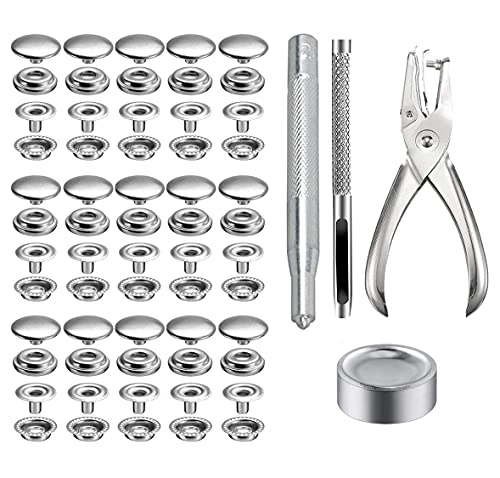 200 stycken snäppfästningskit, BetterJonny 15 mm slitstark rostfritt stål tryckknapp tryckknapp med tång och 3 inställningsverktyg för marin båt canvasväska läder gör-det-själv hantverk
