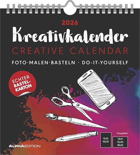 Kreativ-Kalender schwarz 2026 - 21x22 cm - Foto, Malen, Basteln - datiert - Kreativkalender - Foto-Kalender - Alpha Edition: Do it yourself calendar