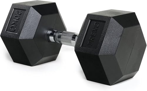 TREXO Hantel 20 kg hexagon hållbar gummerat gjutjärn för styrketräning hemma med ergonomiskt handtag stabil och mångsidig hantel hex HXD200
