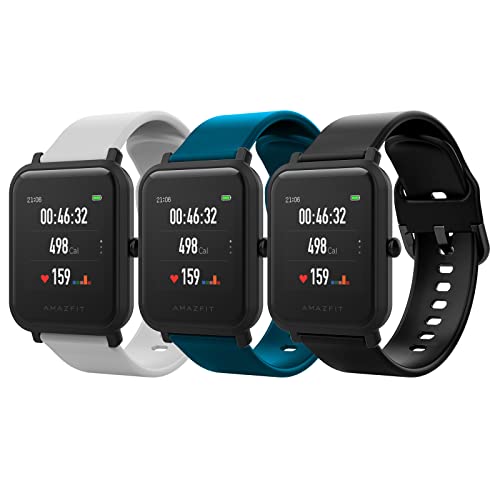 MoKo 3 Pack Straps Compatible with Amazfit Active/Active 2/GTS/GTS 2/2 Mini/2e/3/4/4 Mini/Bip 3/3 Pro/Bip U/U Pro/GTR Mini/42mm, 20mm Soft Silicone Replacement Sport Watch Band for Women Men, G+DB+B