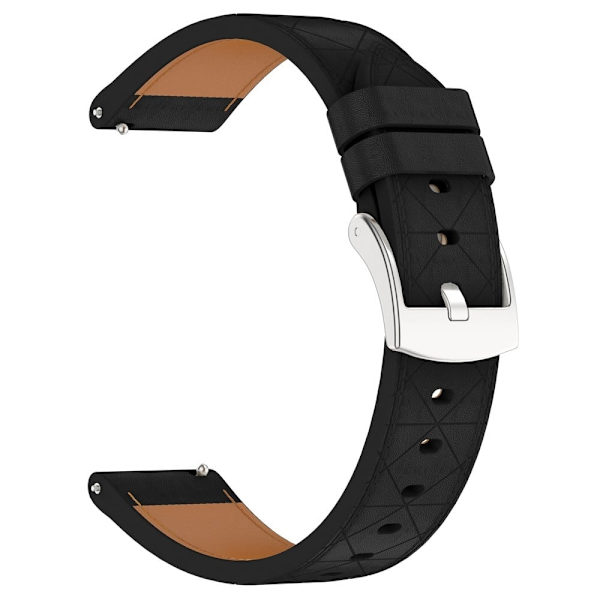 20mm Watch Strap Garmin vivoactive 5 / Venu 2 Plus / Samsung Galaxy Watch7 Genuine Cow Leather Band with Silver Buckle - Black