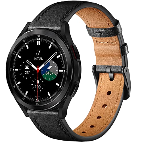Oielai 20 mm Band Kompatibelt Med Samsung Galaxy Watch 7/6/6 Classic/5/5 Pro/4/4 Classic, Ersättningsarmband i Läder, Svart