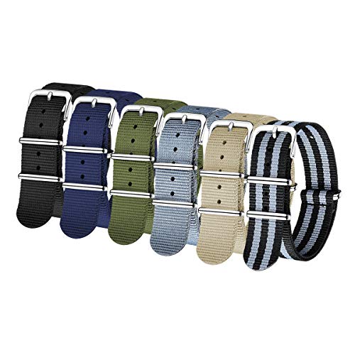 CIVO NATO Strap 6 Packs 16mm 18mm 20mm 22mm 24mm Ballistic Nylon Watch Band Zulu Straps Stainless Steel Spring Bar Buckle and Link Pin Tools, Black + Navy Blue+Linen Navy Blue + Army Green + Black Red + Smoke Grey