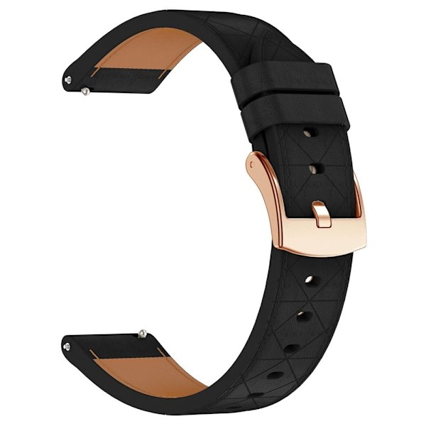 20mm Watch Strap Garmin vivoactive 5 / Venu 2 Plus Square Rose Gold Buckle Genuine Cow Leather Wrist Band - Black