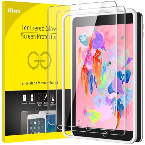 JETech Skärmskydd för iPad (9,7 Tums, 2018/2017 Modeller, 6:e/5:e Generationen), iPad Air 2/1, iPad Pro 9,7 Tums med Enkelt Installation Verktyg, Härdat Glas Film, HD Klar, 2-Pack
