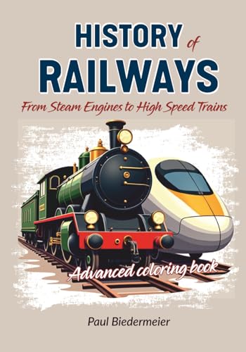 History of Railways Advanced Coloring Book: Over 30 Detailed Drawings of Freight and Passenger Trains from the 19th Century to the 21st Century for Older Kids and Advanced Colorists