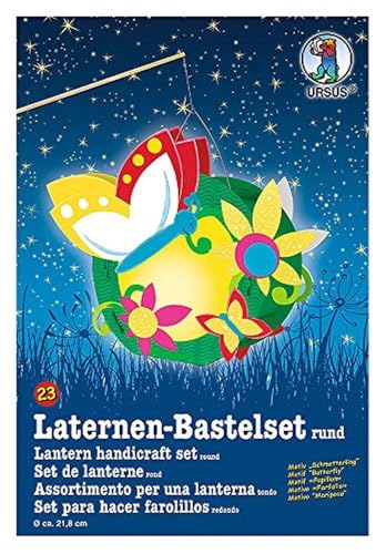 Ursus 18700023 – lyktor pysselset, fjäril, ca 21,8 x 21 x 10,3 cm, diameter ca 21,8 cm, inklusive mallbåge med pysselinstruktioner, för egendesign, perfekt för nästa lyktlöpning