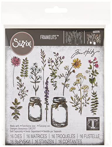 Sizzix 662270 Framelits stansningsset 23 stycken – blomglas från Tim Holtz, stål, silver, 21 x 10,8 x 0,2 cm