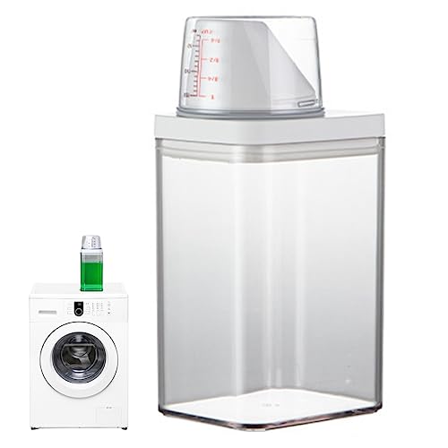 Tvättpulver förvaring 1100 ml tvättmedelsdispenser med mätkopp fuktsäker återanvändbar tom tvål tvättmedel behållare 21 x 10,5 x 8,5 cm