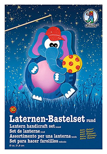Ursus 18700030 – lyktor pysselset, elefant, ca 21,8 x 21 x 10,3 cm, diameter ca 21,8 cm, inklusive mallbågar med pysselinstruktioner, för egendesign, perfekt för nästa lyktkörning