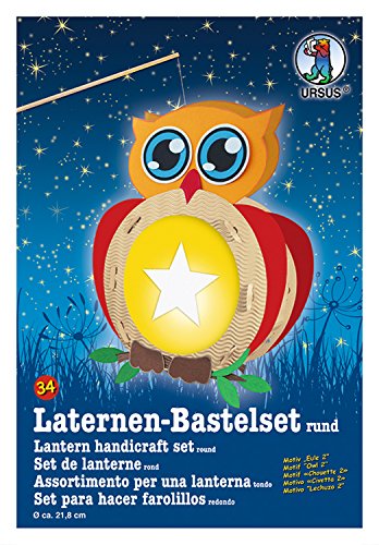 Ursus 18710015F – lyktor pysselset Easy Line, uggla, ca 21, 8 x 21 x 10, 3 cm, set för att pyssla en lykta, inklusive steg för steg-instruktioner, perfekt för nästa lyktlöpning