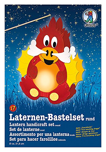 Ursus 18700017 – lyktor pysselset, elddrake, ca 21,8 x 21 x 10,3 cm, diameter ca 21,8 cm, inklusive mallbågar med pysselinstruktioner, för egendesign, perfekt för nästa lyktkörning