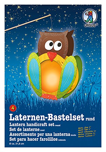Ursus 18700004 – lyktor pysselset, uggla 1, ca 21,8 x 21 x 10,3 cm, diameter ca 21,8 cm, inklusive mallbågar med pysselinstruktioner, för egendesign, perfekt för nästa lyktkörning