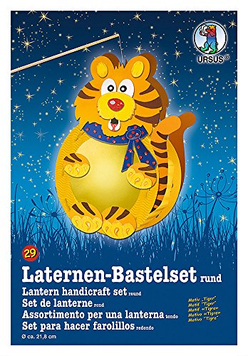 Ursus 18700029 – pysselset för lyktor, tiger, ca 21,8 x 21 x 10,3 cm, diameter ca 21,8 cm, inklusive mall med pysselinstruktioner, för egendesign, perfekt för nästa lyktskena