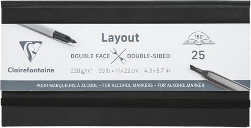 Clairefontaine 975341C dubbelsidig layout anteckningsbok platt öppning - 25 ark extra slät vit ritningspapper 11 x 22 cm 220 g - perfekt för alkoholpenna, Kina bläck och linjekonst