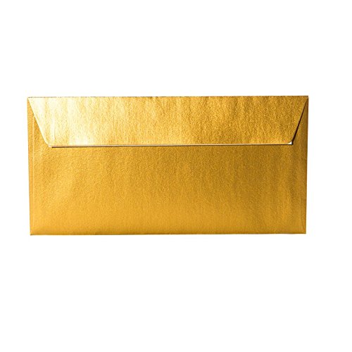 Paper24 25 kuvert DIN långa - 100 g/m2 - guld metallic - 110 x 220 mm 11 x 22 cm, självhäftande med avtagbar remsa