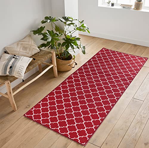 Serdim Rugs Halkfri spaljé design kök och halllöpare alla ändamål mattor-dörrmattor, röd, 67 x 220 cm (2'2" x 7'3)