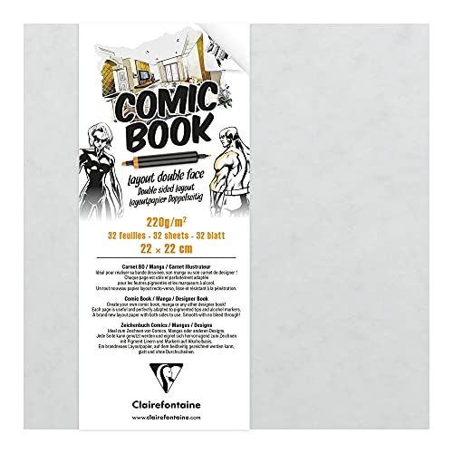 Clairefontaine 975198C ritbok med dubbelsidigt layoutpapper, 220 g, 22 x 22 cm, perfekt för serier och manga, 1 styck