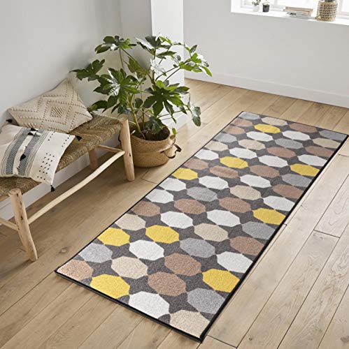 Serdim Rugs Halkfri geometrisk design köks- och halllöpare för alla ändamål mattor, grå-triangel, 67 x 220 cm (2,2 tum x 7,3)
