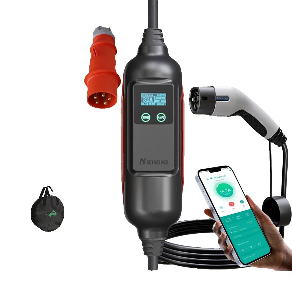 EV Bärbar Laddare, Justerbar Ström, WiFi Kontroll,TYPE2-c, 22KW 32A 3Fas