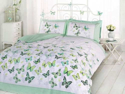 Art by Rapport Vintage Single & Dubbel Påslakan Fjärilar Komplett Set Med Örngott Grön Färg 230x220