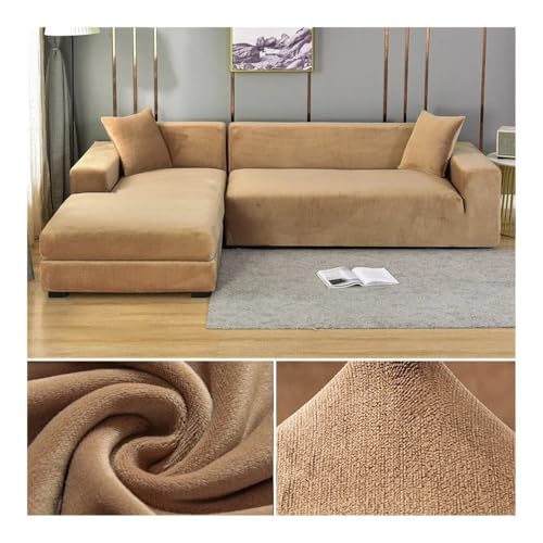 HIKOO DAILY sofföverdrag tjockt elastiskt 1/2/3/4-sits sofföverdrag för vardagsrum sammet plysch L-format hörnsofföverdrag (färg 19, 4 sits (235–300 cm)